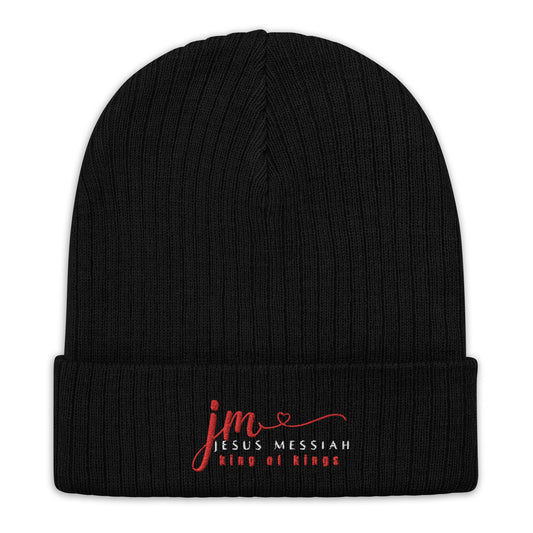 Ribbed Knit Beanie | JM-Jesus Messiah in Red script