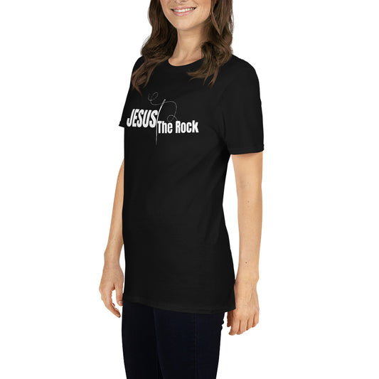 Short-Sleeve Women Tshirt | Jesus the Rock in white script