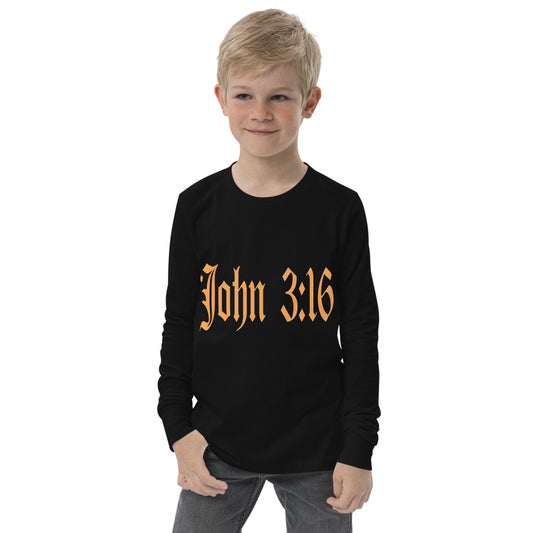 Youth Long Sleeve "John 3:16" in Gold Print - For God so Love the World.....